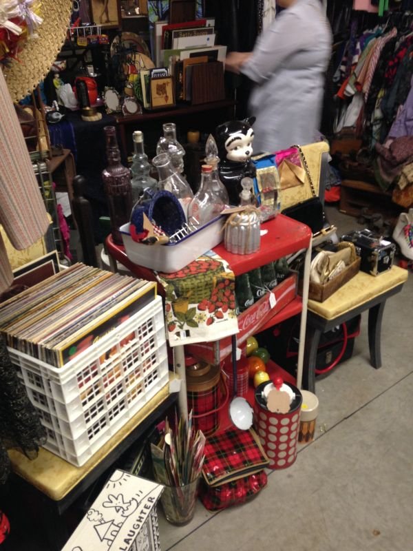 I wasn’t kidding when I said you never know what you’ll find here: Records, purses, vintage sunglasses, a large ceramic cat. It’s like digging for gold!